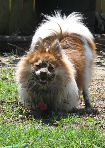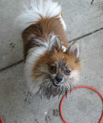 This whole thing, of course, is a thinly veiled justification for having played hookey this week, while fussing with the plants here at home. And I’m not even sure why this is titled “Community Gardens” because my own little landscaping endeavor isn’t a community effort, by any means… (unless you count my muddy helper, there) and whatever my original “community” idea for this post was, it got lost along the way.